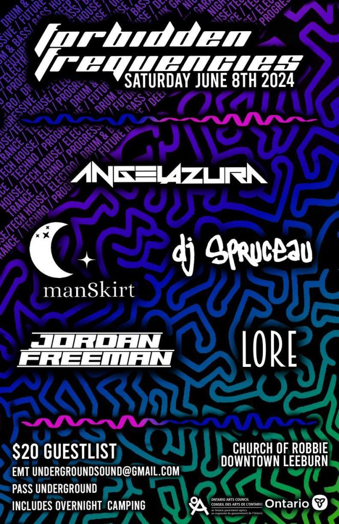 I’ll be heading to Leeburn, ON to join Angelazura, manSkirt, DJ Spruceau and Lore at “Forbidden Frequencies”. The event will take place on June 8th, 2024 at The Church of Robbie, Downtown Leeburn. Tickets are $20 and are available via EMT transfer per the flyer below. Camping included.