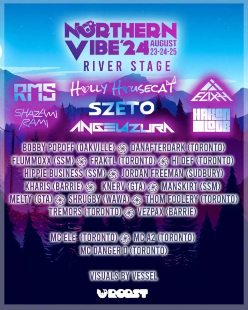 This year’s lineup is arguably the biggest in Vibe history when it comes to dance music. Joining us from Barrie, ON is R.M.S., a well established name in the Canadian drum and bass scene with numerous releases including on Toronto’s own Inner City Dance. Also on the bill are relative newcomers to the stage SZETO, ELIXAH and SHAZAMI RAMI; three DJs who have cemented their roles reputations as reliable party rockers who have appeared at numerous ROOST events and free parties in Toronto. HOLLY HOUSECAT also headlines, fresh from her appearances in Las Vegas Vegas, while HAKAN LOOB and ANGELAZURA represent the north with their wild takes on drum and bass / hardcore and house / techno respectively.